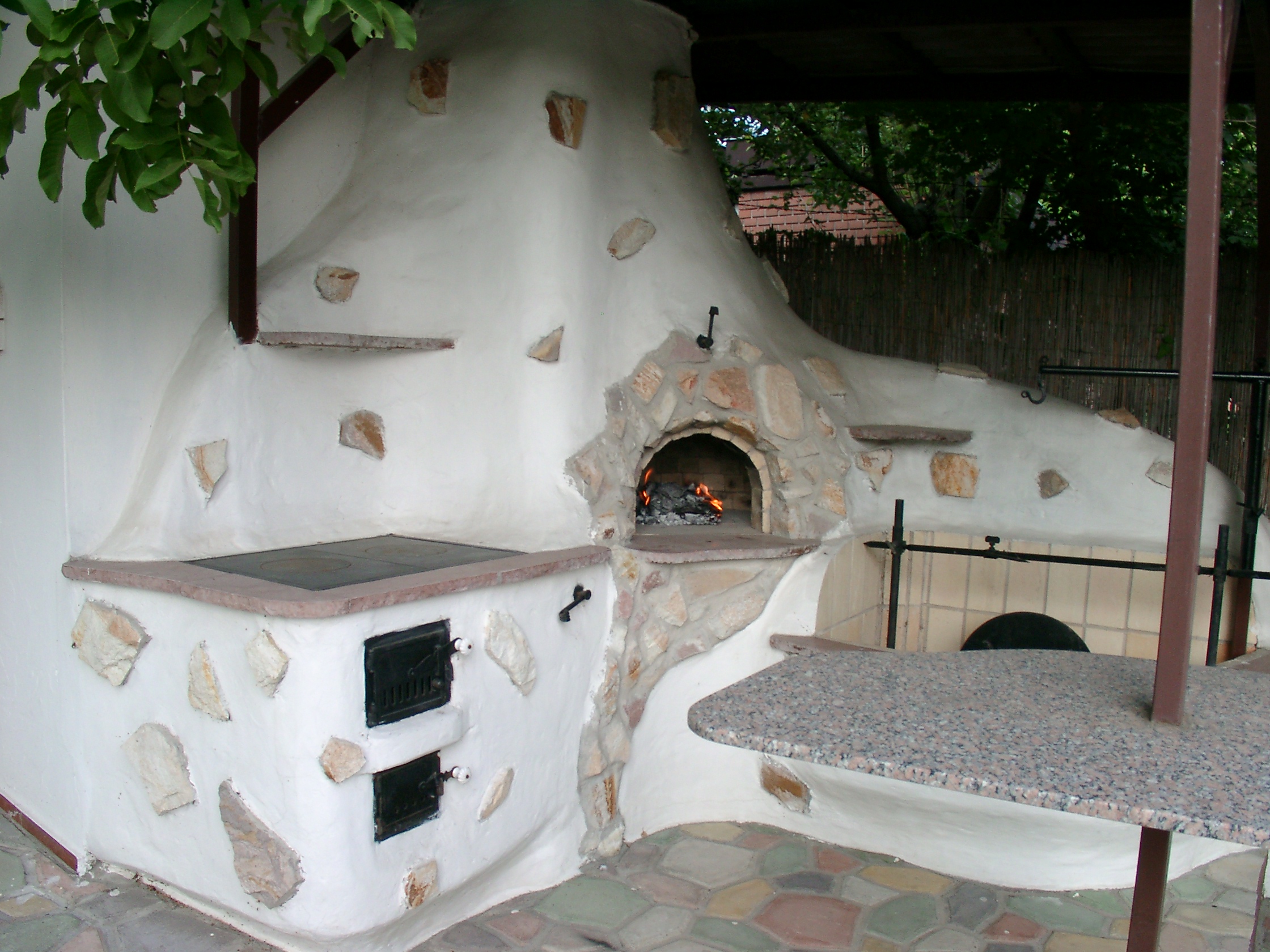 Építünk többfunkciós komplexumokat is. Ilyenkor fantáziánk szabadon szárnyalhat. A kemencén kívül megtalálható az öt funkciós tekerős grill, sparhelt, mosogató, munkaasztal, különböző tároló helyek, legtöbbször kéménnyel egybeépítve.