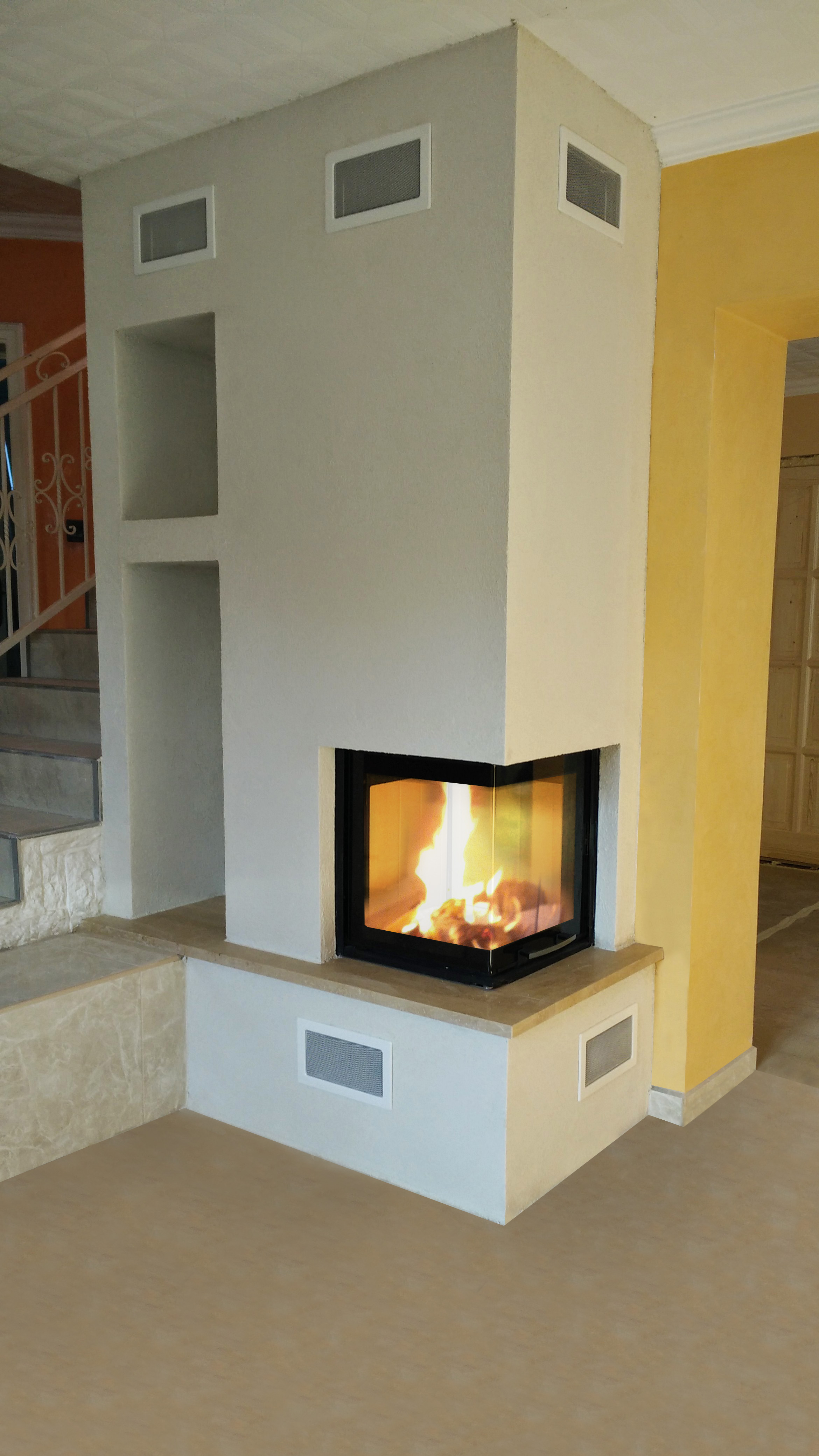 Itt fontos megjegyezni, hogy szinte minden tűztér rendelkezik kültéri égési levegő csatlakozással. A vízteres tűzterek kivételével legtöbb kandallóba hőleadó betétet is beépítünk. Ezzel a fűtési hatásfokot jelentősen növelni tudjuk.